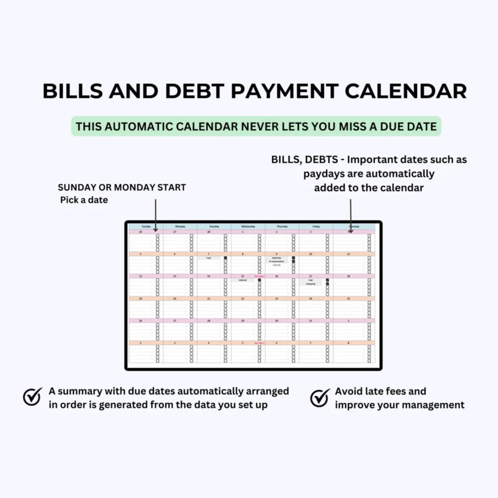📌 Bill Calendar: Automatically track and organize all your monthly bills and debts.