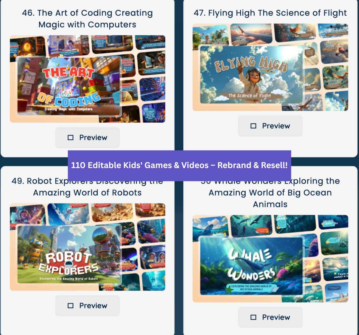 Editable Kids’ Games, Quizzes & Science Videos — With Full PLR Rights for Rebranding & Resale